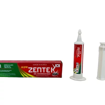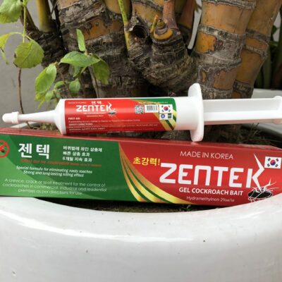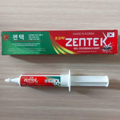Thuốc diệt gián Zentek được sản xuất dạng xi lanh, bên trong chứa gel có tác dụng tiêu diệt các loại gián thường gặp trong nhà, chung cư, văn phòng như: gián Đức, gián Mỹ. Thuốc diệt gián Zentek thuận tiện sử dụng, kể cả dùng cho những góc khuất, phía sau tủ lạnh, khe nứt tường và những nơi gián thường ẩn náu…. Bả diệt gián đức Zentek có một lượng hoạt chất chính là Hydramethylon 2% cho nên độ độc tính ít rất an toàn đối với con người và vật nuôi.
